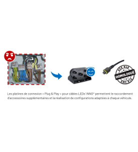 Platine de connexion additionnelle LEDs’INNO® avec connectique Plug & Play LI® femelle 3x8C (M12) et 8x2C (M10).