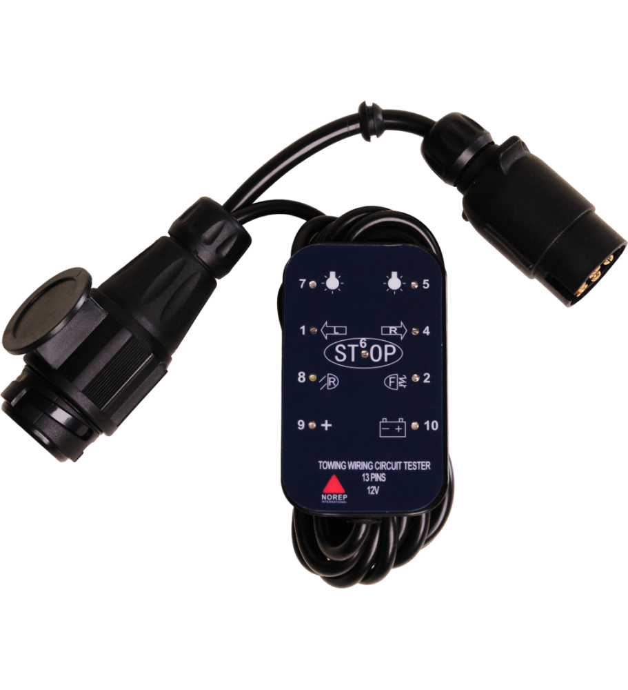 Une fois l’appareil connecté, la longueur du câble fournit permet d'emmener le testeur jusqu'au volant et de contrôler individuellement chaque fonction : un voyant témoin s'allume pour chacune des fonctions lorsque celle-ci est transmise à la prise. Il permet de contrôler le véhicule seul sans la remorque et d'en vérifier le bon fonctionnement avant son raccordement. Ce modèle permet de tester directement les faisceaux en 7 broches et en 13 broches avec le même boitier. À noter qu'en montage 7B, il ne peut y avoir de fonction "Recul" activée sur le faisceau de remorque.