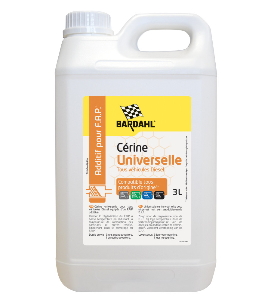 La Cérine Universelle Bardahl est un additif catalyseur de carburant destiné à limiter l’émission de particules polluantes et à préserver le filtre à particules (FAP) de votre véhicule. Elle est compatible avec tous les produits d’origine recommandés par les constructeurs automobiles tels que Peugeot, Citroën, Volvo, Ford, Fiat, et bien d’autres.
