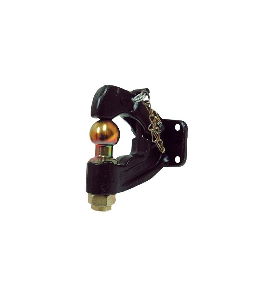 Les dimensions de la plaque de fixation sont de 120 x 90 mm, avec un diamètre de trous de 18 mm, assurant une compatibilité optimale avec de nombreux systèmes d’attelage. Ce crochet mixte intègre une boule standard de 50 mm, parfaitement adaptée aux remorques et aux accessoires d’attelage courants.