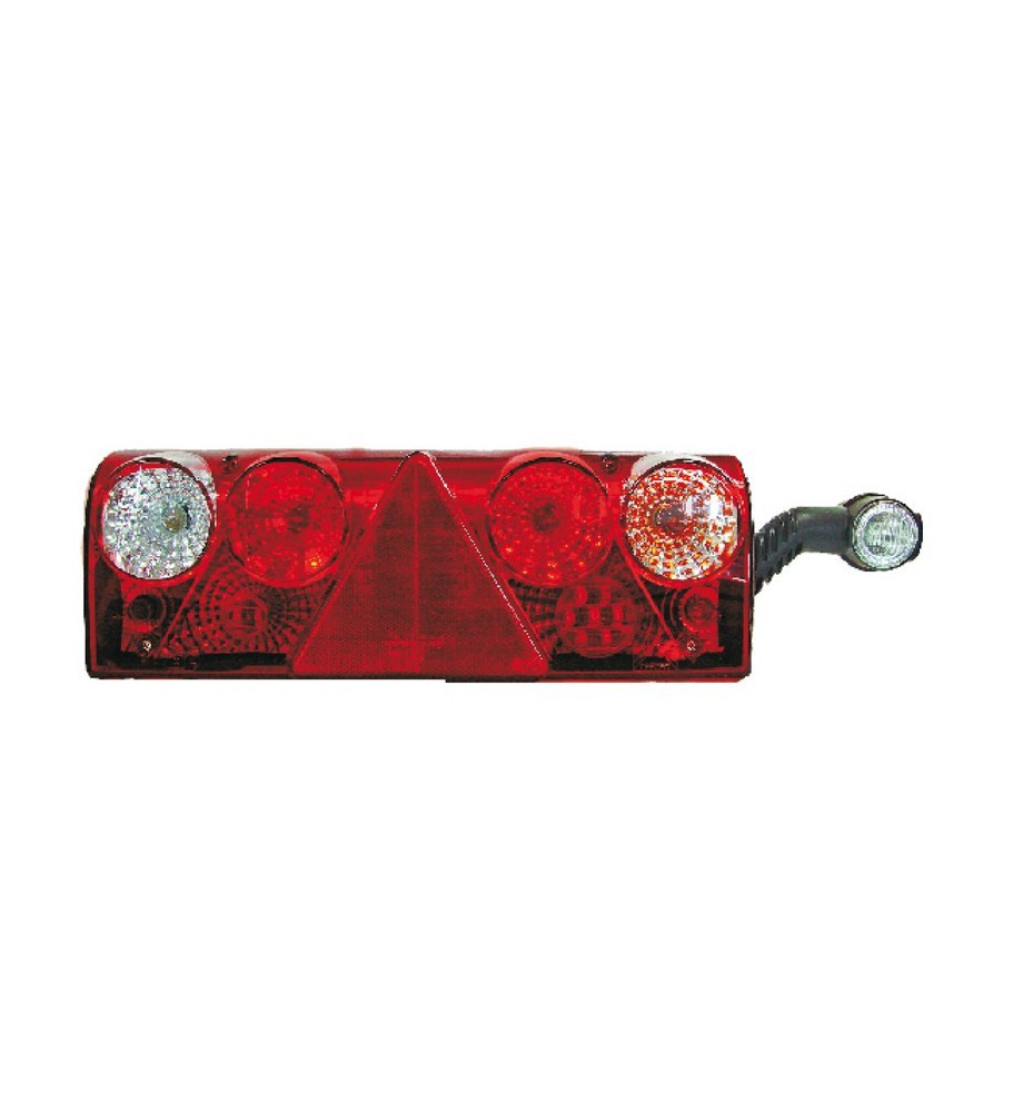 Feu 8 fonctions: clignotant, stop, position, antibrouillard, recul, éclairage de plaque, gabarit à LED, catadioptre triangle