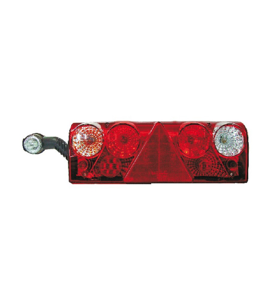 Feu 8 fonctions: clignotant, stop, position, antibrouillard, recul, éclairage de plaque, gabarit à LED, catadioptre triangle