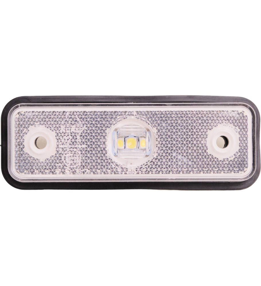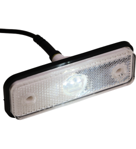 Ce feu de position latéral blanc à LED 10-30 Volts rectangulaire est équipé d’un connecteur femelle M10 LI® 2 conducteurs. Il est utilisé sur tous types de remorques et engins.