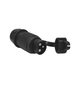 Fiche 3 pôles 6 à 24V (DIN 9680) en plastique renforcé de marque Erich Jaeger. Contact en nickel, couvercle en caoutchouc pour une meilleure protection. Compatible avec des câbles de diamètre 7 à 9 mm et d’une intensité maximale de 25A. Sortie de câble par presse-étoupe pour une étanchéité optimale.