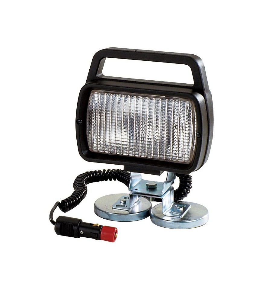 Projecteur de travail rectangulaire magnétique orientable - Monté sur support avec 2 plots magnétiques équipé d'un cordon d'alimentation spirale extensible 3 M + prise allume cigare