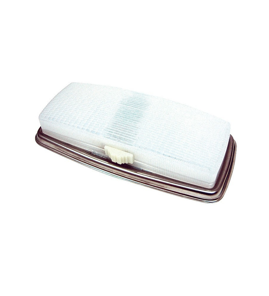 Reçoit 2 ampoules 12V 21W, réf. 110117 - Monté sur platine en inox - Diffuseur plastique opaque - Interrupteur en façade