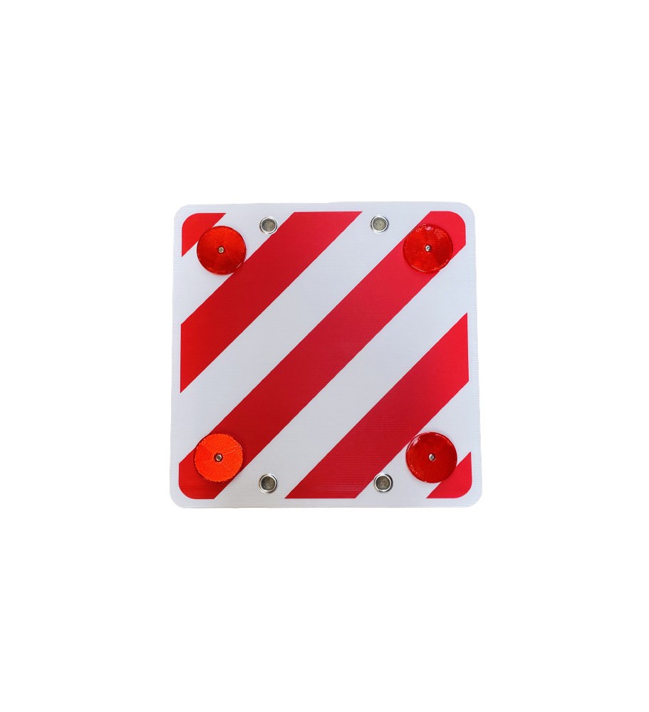 Panneau de signalisation de 500x500 mm, équipé de catadioptres rouges et blancs. Indispensable pour la sécurité, à fixer à l'arrière de votre porte-vélos.